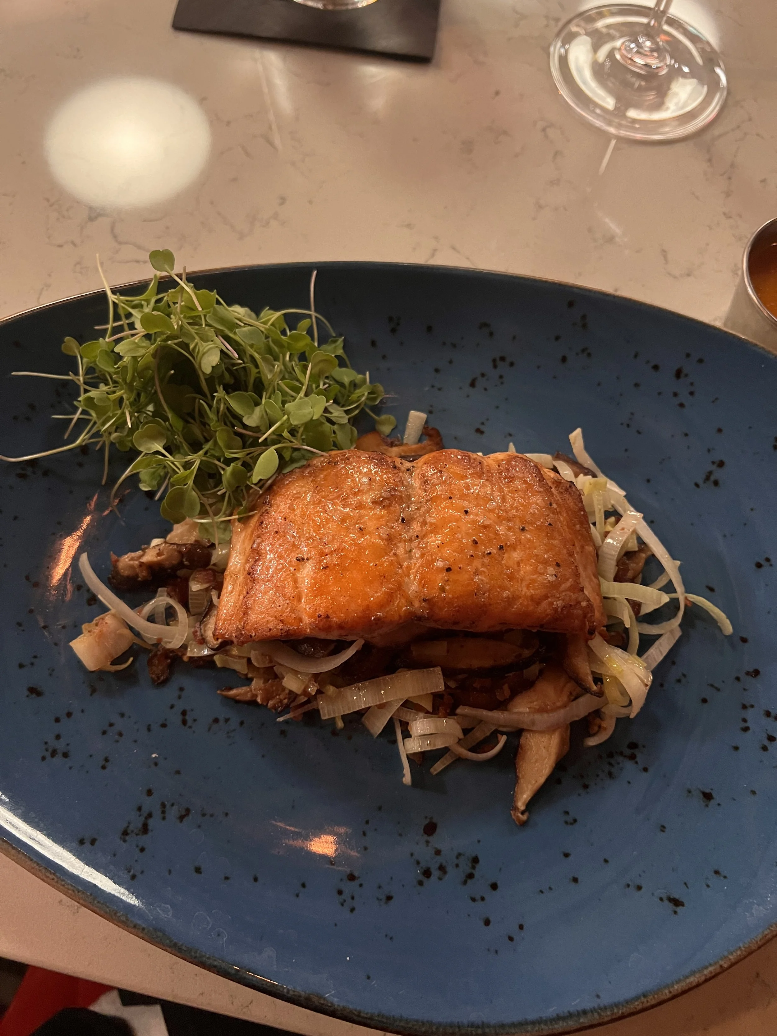 A colorful, eclectic and vibrant dining space, Wilo is the place for families, friends and couples alike enjoy a lovely menu of modern Puerto Rican cuisine complimented by global flavors, artisanal cocktails and a robust wine list. Whether you’re stopping in for grab-and-go bites or enjoying its special menu in-house, a premium casual and delightfully comfortable experience is matched with a focus on modern gastronomy. I loved sitting at the bar and chatting with the friendly staff while enjoying the loveliest meal and a bottle of wine with my husband alongside a room of blissful diners. The salmon entrée is my idea of heaven - a crispy skin filet served alongside fresh veggies and a housemade sauce.